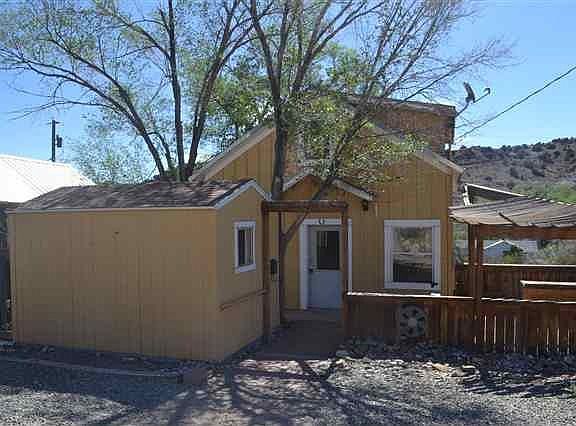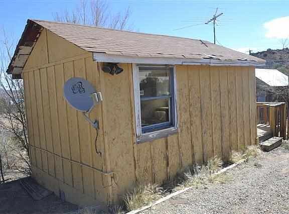A 2 level home with bath and kitchen on main level. Upper level bedroom is carpeted and is open to a low ceiling storage space of 130 sq ft which is not included in main sq ft of home. Wood floors complement the lower level. Detached from home is a 215 sq ft outbuilding with power which has utlitarian value.