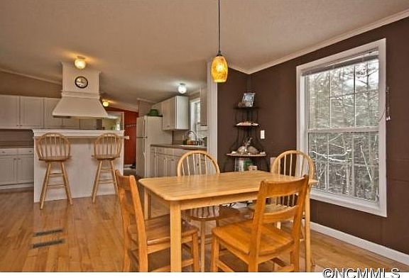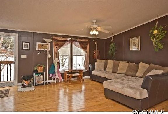The best of both worlds, country feel yet only 15 minutes to Downtown Asheville. Spacious 2,000+ sq ft with 3 bedroom/ 2 bath, office & rec room. Open floor plan with living/kitchen/dining/family room, wood burning fireplace, hardwood floors. Master suite with 2 vanities, shower, and soaking tube. Large lot bordered by creek with working vegetable garden, perennial herbs & flowers, fire pit, and so much more. Shared well $8 a month.