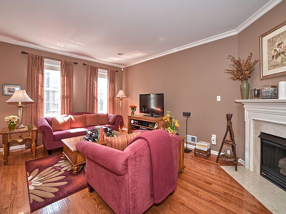 Meticulously maintained Dorchester model with 2 bedrooms, 2.5 bath, and attached garage. Wood floors, crown mouldings on main level. This unit has a great open floor plan, spacious living room with gas fireplace, dining area. Updated Kitchen with 42" height cabinetry, granite counter tops and breakfast bar. Master bedroom features high ceilings, jetted tub, double vanity and stall shower. Gated community, with outdoor pool, clubhouse and gym. Minutes away from train to NYC.
