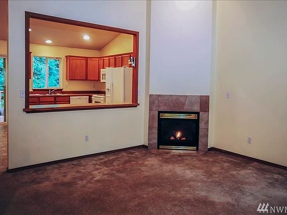 Modern design rambler style home with the master suite on the main level. The kitchen features cabinets with crown molding - and all appliances are included. The living room has a tiled gas fireplace. The master suite has an on-suite bath with double vanity in the full bath, and walk-in closet. Main level laundry. Downstairs has a family room, full bath, and 2 other bedrooms. The vacant property to the right is owned by Sudden Valley, and has been turned into permanent green-belt.