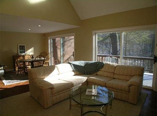 Easy living on one level; bright,open custom Abbot model at Blanchard Farms;sliders in both LR & DR lead to large deck overlooking forest pond; family rm & office on 2nd floor;excellent move in condition! Near walking trails leading to center of town, enjoy lovely serene views as wells as tennis court & inground pool. Main level has large kit,DR open to LR w/FP & parquet wood floors,large 2nd bed, full bath & master w/ double closets & full bath. Lg lower level w/walkout can easily be finished.