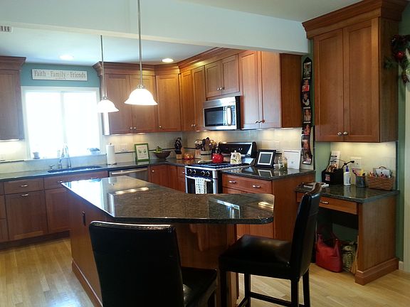 Impeccably maintained and decorated Center Hall Colonial in Greenview Estates! Large and level property located in a family friendly neighborhood and ‘around the corner’ from Greenview Park. Great flow and family living space – perfect for entertaining. Built in 1965, lot size 100’ X 175’ and located in the Stephen J. Gerace Elementary School district. House has been completely remodeled by current owners and undergone three additions. Hardwood floors- except family room- and custom molding throughout Double paned windows with dividers and insulated exterior doors 2.5 baths -all with Corian counters Attic fan with additional roof vents in well insulated attic Fabulous and large custom kitchen (21’ X 12’) with granite countertops, cherry cabinets, stainless-steel appliances, double stainless steel sink, under cabinet lighting, 10’ Island with seating, separate wet bar with glass and cherry cabinets - ideal for entertaining. Adjoining and spacious open eating area (12’X12’) allows for social contact with family and friends. Large DR/LR (23.5’ X 12’) with crown molding extends from front to back of house. Two large center hall closets provide ample storage. Half bath with Corian counters First floor laundry with cabinets and wash tub Huge Family room (15.5’ X 25’) with custom brick Gas fireplace – built in under-window cabinets and plush Berber carpeting in family room. Pella sliding doors open to large paver patio with natural gas for outside cooking – great space for entertaining in the spacious and level backyard. Pavers extend around to the front of the house. Upstairs, Large master bedroom (11.5’ X 19’) with full bathroom, crown molding, 2 walk in closets and ceiling fan. 2 additional large bedrooms (12.5’ X 11.5’ and 16’ X 11’) with built in closets and ceiling fans Full hall bathroom remodeled with Corian counters Full Basement with finished Man Cave - Berber carpeted, built-in double closets with room for exercise equipment. Separate work area with work bench and additional storage and shelves; Built-in storage shelving beneath stairs. Newer refrigerator in basement another bonus 2 car garage- new door openers with exterior keypad; pull down stairs with ample overhead storage Large, level and landscaped property with underground irrigation Exterior lighting for front and rear of house 8’ X 12’ shaker shed with vinyl siding matching house Stone wall garden in front with perennial flowers, Custom post lamp on timer in front garden New vinyl siding and gutters August 2012 Hi Efficiency Gas forced air furnace Dec 2012 with Aprilaire Humidifier; high efficiency gas water heater, central A/C; Water softener system French drain with sump pumps and battery backup system. Not located in FEMA flood zone map 200 Amp Service Panel 2013 property taxes $9458.00