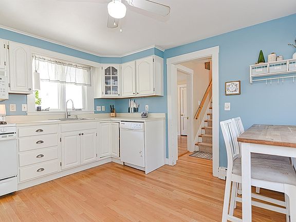 Wonderful Cape style home in fantastic downtown location with amazing backyard! This 3/4 bedroom home has so much to offer. The large living room has hardwood floors and great natural light. Beyond it is the dining room and an eat in kitchen full of cabinets and plenty of space for a table. Adjacent to the kitchen is a mudroom/laundry room with a door leading to a lovely porch as well as access to a versatile storage area. The homes flexible layout allows for two bedrooms (one currently the dining room) on first floor and two on second floor all w closets.The two full bathrooms both have new flooring (2022). Outside you will find a flat yard, a patio (2020), a shed (2016), perennials and grape vines. Enjoy peace and privacy as well as the convenience of being minutes from shops, restaurants, schools, park, trails, commuter rail, Rtes 495, 135, 9 & 30. Don't miss this opportunity! Open House Saturday 1:30-3pm.