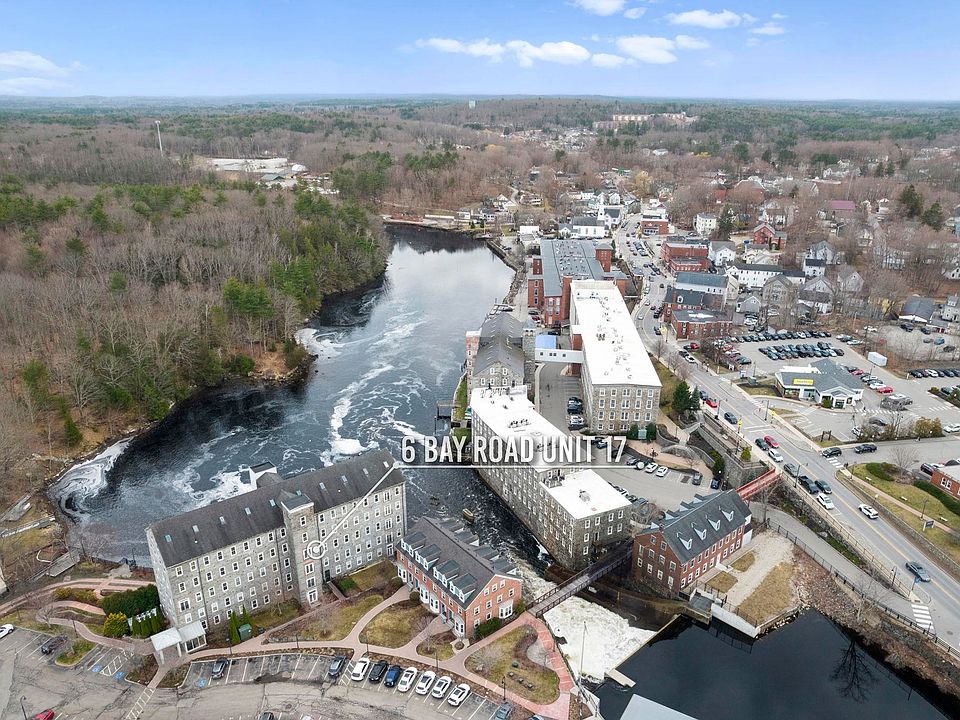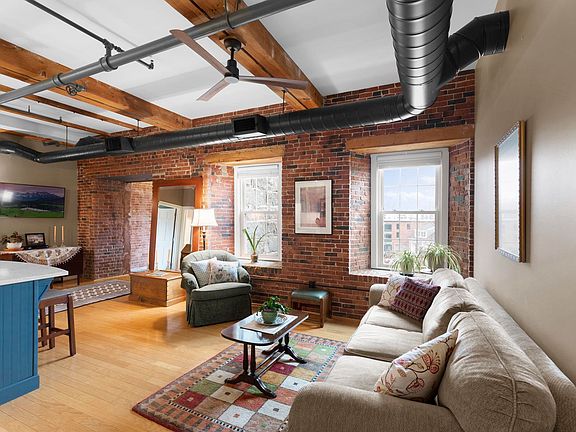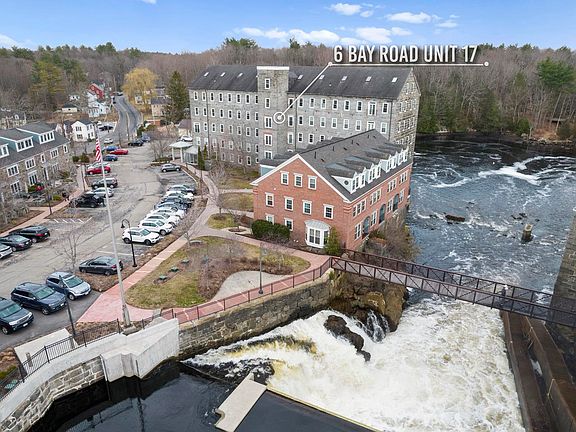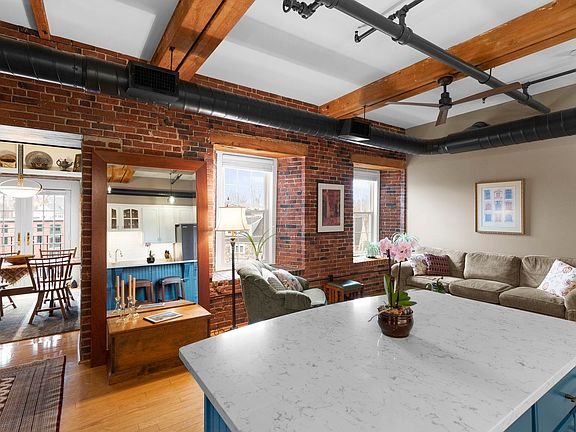 This move-in ready one-level condo is just steps from Newmarket's vibrant downtown, so leave your car at home and take the pedestrian bridge across the river to a variety of restaurants, shops, public library and the famed Stone Church music venue and more. Prefer a walk in the woods? The Heron Point Nature Sanctuary and Lubberland Preserve trails are also nearby. Located in a historic waterfront granite mill building, the unit features exposed beams, iron structural framing, thick brick and stone walls and high ceilings. Atrium glass doors and large double hung windows provide abundant light and picturesque views of the beautifully landscaped courtyard and Lamprey River. Highly desirable 2 Bdrm/2 Bath plan plus den, laundry and walk-in closets. Recently updated spacious kitchen featuring painted hickory cabinets, custom movable island, Silestone quartz countertops, porcelain backsplash, handblown glass pendants, under cabinet lighting and Frigidaire Professional Series appliances. Hubbardton Forge lighting (entry, primary bedroom, living), custom built-ins, Minka fans, solid panel wood doors and closet shelving and more! Central A/C and FHA heating controlled from in-unit thermostat. Deeded parking. Extra storage closet. Secured building with elevator, nicely appointed fitness room, bike and kayak/paddleboard storage and dock. Byrant Rock is a NO SMOKING, pet-friendly community! Municipal parking lot nearby for guests and extra vehicles. Sure to be a great investment!!