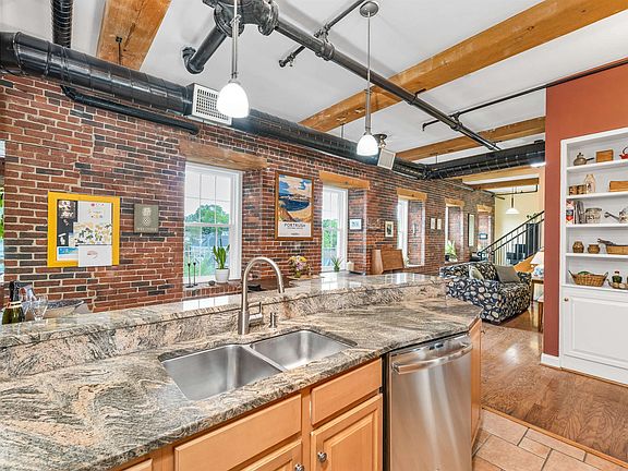 Embrace the charm and exceptional lifestyle of coastal NH from this stunning 2-level condo perched atop a historic 1832 waterfront mill in the vibrant heart of downtown Newmarket. This top-floor unit blends timeless character with modern comforts—featuring exposed brick, hand-hewn beams, black iron accents, hardwood floors, granite countertops, and an open wrought-iron staircase. The main level offers an open-concept kitchen/living/dining area, bedroom, full bath, cozy den, office nook, and laundry. Upstairs, find a spacious loft-style bedroom, sitting area, second bath, and a phenomenal private deck overlooking the Lamprey River and Heron Point Sanctuary. Deep window wells, oversized closets, and courtyard views enhance the charm. Choose your preferred level for the primary bedroom. Step outside to boat, kayak, or fish from your backyard—or simply enjoy the surrounding natural beauty. The secure, elevator-accessible building offers top-tier amenities: a newly outfitted private gym with Peloton, plus kayak & bike storage. Condo fee includes heat, hot water, water/sewer, trash, and central air. Two deeded parking spaces. Pet-friendly, effortless, and stylish living awaits—just a short walk to shops and dining, 30 mins to Portsmouth, 1 hour to Boston.