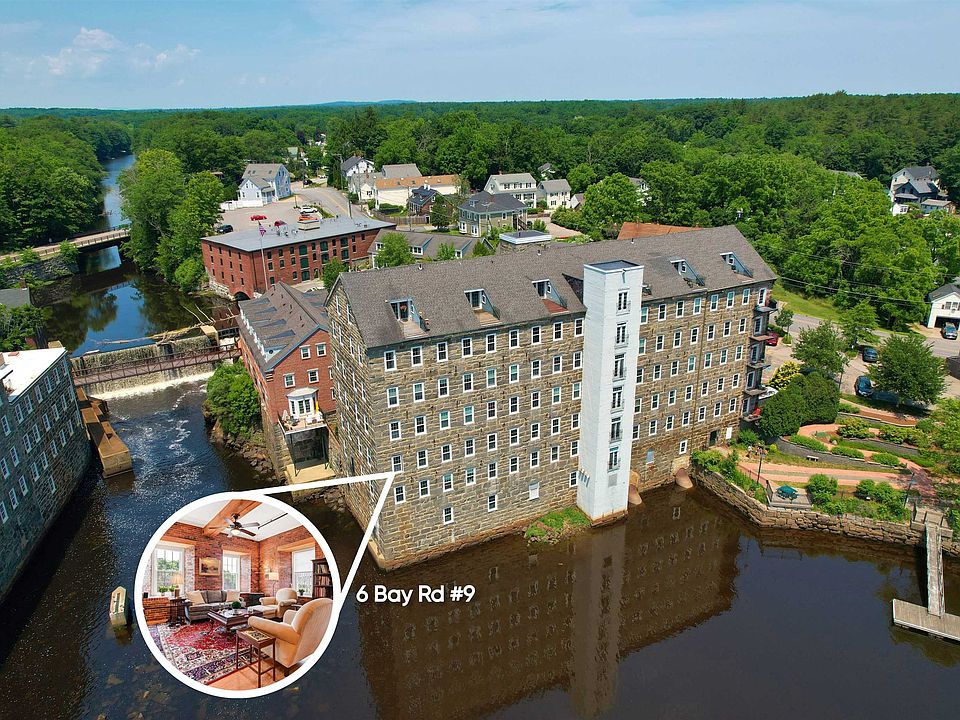 Welcome to 6 Bay Road Unit 9, an exceptional end unit in a luxury mill building nestled in downtown Newmarket. This spacious residence features a large primary suite and a den, with an open concept layout boasting high ceilings for an airy, sophisticated ambiance. Ample storage, including additional private space in the basement, complements the convenience of an elevator and on-site amenities such as a fitness room, kayak storage, and a bike room, catering to an active lifestyle. Enjoy breathtaking views of the Lamprey River, highlighting the charm of waterfront living in Newmarket. With all special assessments paid in full, this property ensures peace of mind for buyers. Schedule yours to discover the allure of waterfront luxury living in downtown Newmarket. All special assessments for this unit are paid in FULL. Condo fee includes heat, hot water, ac, trash, water and sewer.