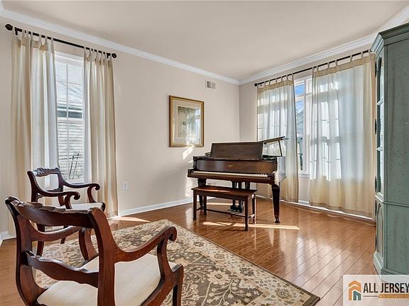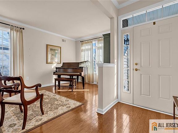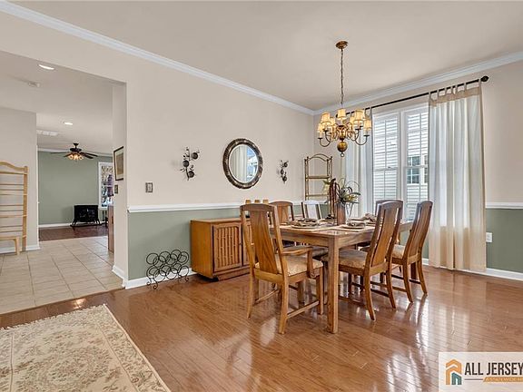 Berkeley Model with French doors to added sunroom. Beautifully maintained home, gleaming hardwood floors in most rooms. Formal Living Room/Dining Room. Large eat in kitchen with and extended center island, pantry closet, refrigerator-2023, disposal "as is". Primary bedroom has a tray ceiling, walk in closets, and a full bath with double sinks, and soaking tub. Second bedroom/office with full bath nearby, with built in linen closet. Stackable washer/dryer in Laundry Room. Rear paver patio 9x8. Water Heater March 2024