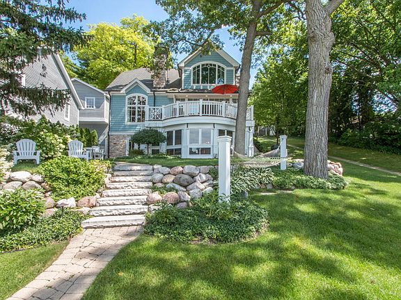 The views from this Lake Geneva lake front home are stunning! The main floor was completely gutted in 2019 to provide for a spectacular new kitchen, great room, and expanded lakeside deck. Hand scaped hardwood floors exquisite molding and details make this an elegant casual lake home for family and friends. The home boasts a second kitchen, entertaining area and screened in porch of equal grace in its walk out lower level. Its property too has been meticulously designed and maintained to match the all-out use of the home’s indoor and outdoor spaces. Even the home’s private pier and lake front have been carefully planned with a huge entertaining deck and accommodations for all of the lake toys from kayaks, paddle boards jet skis and boats.