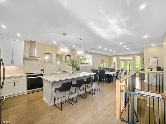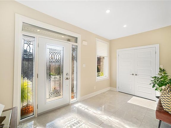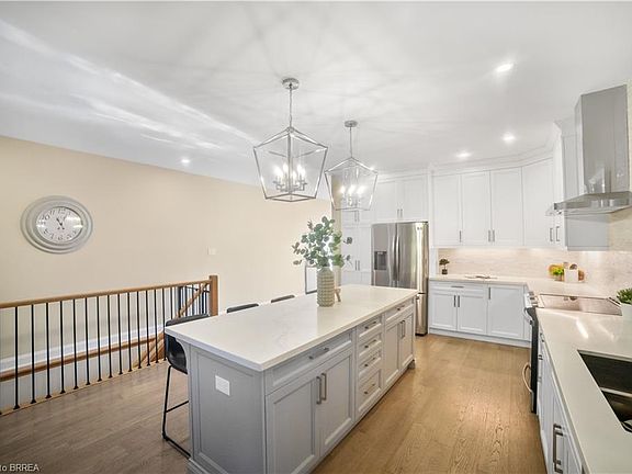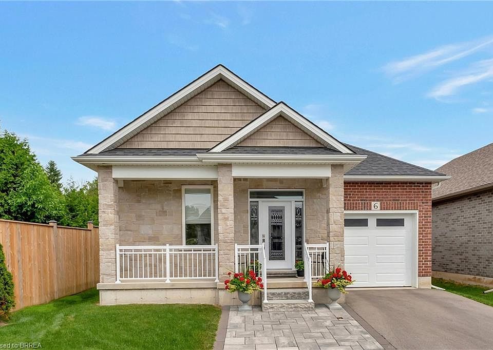 Welcome to your dream home in Brantford's Beckett neighbourhood. This stunning custom-built 3-bedroom, 3-bathroom detached condominium bungalow perfectly blends modern elegance, comfort, and convenience. Nestled in a serene and sought-after community, this residence showcases a spacious open-concept design where the living room, dining area, and kitchen flow seamlessly together, creating an inviting atmosphere ideal for both relaxation and entertaining. Clean architectural lines, 9’ ceilings on both levels, and large windows fill the home with natural light, highlighting the beautiful engineered hardwood floors and sleek finishes throughout. The striking kitchen is a true showpiece, featuring custom white cabinetry, quartz countertops, stainless steel appliances, and a generous island — a perfect space for culinary creativity or casual gatherings. The relaxing living room leads directly out to a large covered deck overlooking a beautifully landscaped backyard — perfect for outdoor entertaining or quiet moments in nature. The primary bedroom easily accommodates a king-sized bed and offers a walk-in closet along with a spa-inspired ensuite boasting dual vanities and a luxurious walk-in shower. The fully finished lower level expands your living space with wide-plank luxury vinyl flooring, a cozy family area anchored by a gas fireplace, two additional spacious bedrooms with wall-to-wall closets, a bonus room, and a stylish bathroom. Additional highlights include an elegant oak staircase, energy-efficient windows, abundant pot lighting, underground automated irrigation system, and a one-car garage. With thoughtful upgrades, high-end finishes, and meticulous craftsmanship, there’s nothing left to do but move in and enjoy this exceptional quality-built home. Book your showing today!