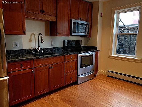 This fully-renovated front-facing apartment offers a large bedroom with built-in shelving. Sunny, spacious living room, and gleaming tile bathroom. Modern kitchen boasts beautiful cherry cabinets and granite countertops. New renovations and hardwood flooring throughout. Free laundry and large dedicated storage lockers in basement. Heat & hot water included. Located on the border of Somerville and Cambridge, immediately between Inman Square and Lechmere. Easy access to Union Square, East Cambridge, and West End. Available now; call to schedule a showing today!