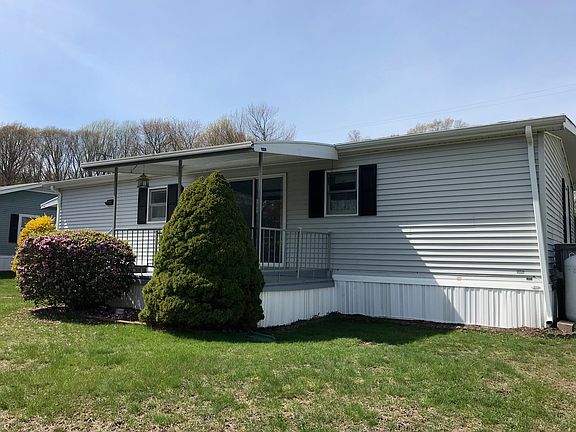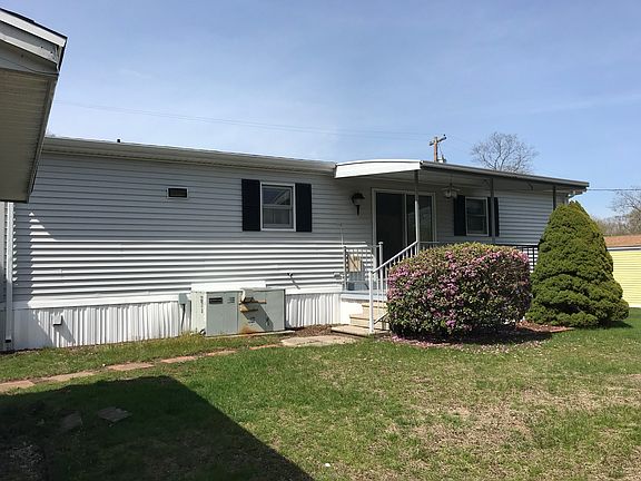 RESALE HOME! Handsome ranch with open living area, two bedrooms, two full baths. This home has lots of closet space, deck off dining room, shed for outdoor storage and a patio. Home needs TLC. Located on a quiet street with small park and horseshoe pits nearby. Clubhouse and pool included in community amenities. Beechwood is for People 55+