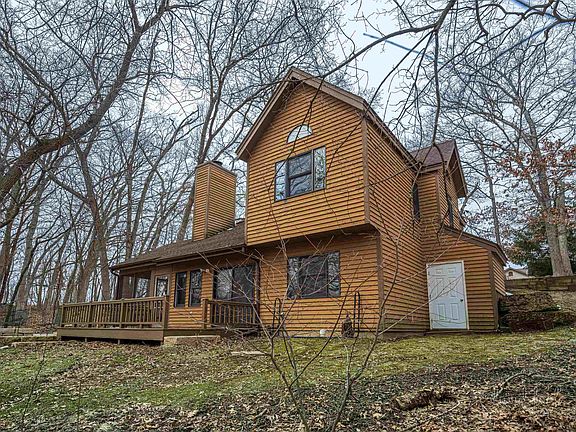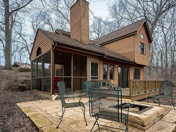 Warm and inviting contemporary retreat nestled within the trees on a .80 acre beautifully wooded lot offering wonderful privacy and nature galore. Entry opens to upper level featuring lofted landing area with dramatic overlook of main level living area, two comfortable guest bedrooms, and shared full bath. Descend to the main living level to find a light and bright living room with stunning floor to ceiling stone fireplace, multiple skylights above, access to both rear deck, screened porch, and stone patio with fire pit, open dining area, galley kitchen with updated stainless appliances and eat-at breakfast bar with wood accents, spacious master bedroom, nicely appointed full bath, and laundry closet. Exterior-accessed integrated storage area with room to keep seasonal items. Vinyl plank in main level living room, dining room, and master bedroom. Location convenient to Owners' Club with indoor pool, outdoor pool, fitness facility, multi-sport gym, game room, and outdoor tennis, the tranquility of 220-acre Lake Galena, and miles of hiking trails. Sold with some furniture and to be transferred via separate bill of sale.