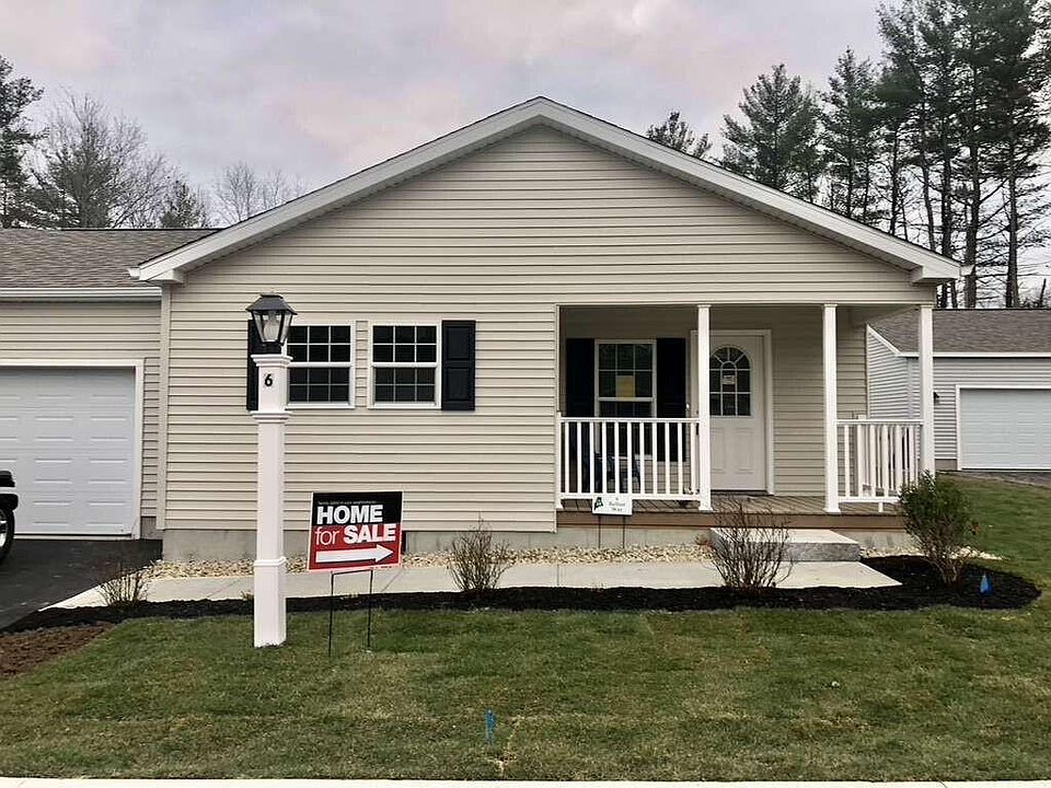 Gorgeous low maintenance Energy Star Rated Pine Grove Home located in Blackberry Hill Village, southern Maine's newest over 55 manufactured housing community. A 2 bed, 2 bath home is set on corner lot with open field behind it providing privacy for the concrete patio. A welcoming front porch leads into a large living room adjacent to an expansive eat in kitchen loaded with beautiful wood cabinets, center island and stainless steel appliances. Step through door at end of hallway to access the primary suite with generous walk-in closet and bath. The computer room provides easy access to outdoor patio. Separate laundry room/utility room opens into the garage. Professionally landscaped and irrigated lot with the community providing lawn care, spring and fall cleanup, plowing driveways and curbside trash pick-up. Covered mail kiosk with separate driveway. Two pickleball courts ready to go.