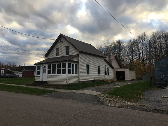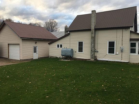 this 2-Bedroom Old Style home is in great shape sits on a Village Double lot with a blacktop drive and a Gravel second driveway leading to large two story Garage-has a three quarter basement with crawl space under the Kitchen-has 4 -sources of heat-oil fired forced air furnace in the basement-wood stove in the Kitchen-monitor heater and pellet stove in Dinning and Living rooms which ever is cheaper to run at the time they use.Has a large Dinning room that could be the Living room and Living room could be converted to a 3rd Bedroom-Large eatin Kitchen.Garage is 24x24 with a 1-stall at the end of the original paved driveway-enclosed front porch-Vinyl siding-Metal roof-200amp entrance-Laundry room is in the Kitchen