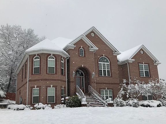 Welcome to your dream home! Built in 2011, this 4,000 sq. ft. masterpiece is the largest and most striking home in the neighborhood, featuring full light red brick on all four sides and a unique castle-like design. Perched on a small hill with a grand 10-step entrance, the home boasts beautiful landscaping and mature trees for privacy. Inside, you'll find hardwood floors throughout, with cozy carpet in the bedrooms and office. This spacious 4-bedroom, 4.5-bathroom home includes en-suite bathrooms in every bedroom, a luxurious master suite with dual sinks, a soaking tub, and a standup shower. The home offers two kitchens, two dining rooms, and two living rooms—perfect for entertaining or multi-generational living. Both kitchens feature rich dark wood cabinets and granite countertops. Enjoy outdoor living with a covered second-floor deck, screened to keep bugs at bay, and a lower open deck with split stairs for easy access. The downstairs patio adds even more space to relax and entertain. A two-car garage includes a small fitness room, and the functional split staircase design adds character to the home’s layout.