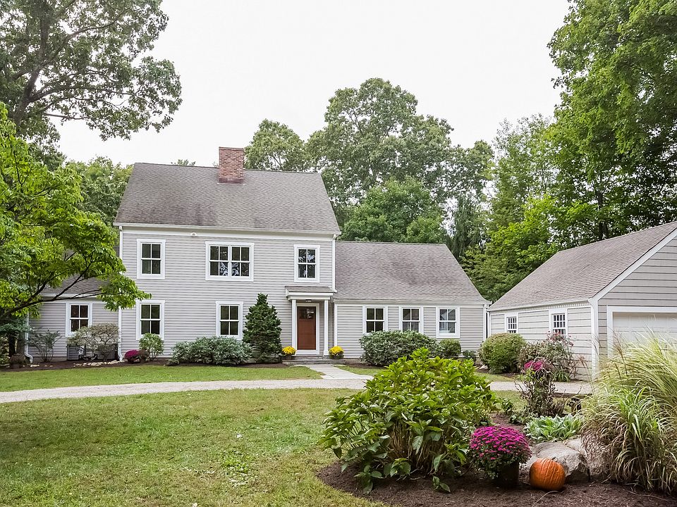 This home is sited on 1.63 rolling acres on a private cul de sac just five minutes from Tokeneke School, downtown Darien,and walking distance to Five Mile River.This Berry Lane home is a center hall colonial with a first floor Master suite and two additional downstairs bedrooms. New, remodeled kitchen with a spacious center island and professional appliances. Light fills the downstairs through French doors that span the entire back of this home and lead to a stone patio and over an acre of backyard. Upstairs there are three more bedrooms, an office,hobby room ,and updated bathroom. The third floor is newly finished and provides and additional 660 sq feet of living space. New central air conditioning in 2016.