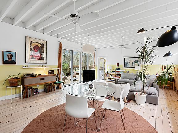 Rental Registration #: 24-217 Beautiful and stylish, this ranch style house marries old world charm with a modern twist! Open floor plan with comfortable seating area and oversized sliding doors that connect indoor living to the outdoor environment. The living area flows into a modern kitchen/ dining area. The dining area includes more lounge seating and a beautiful fireplace that ties it all together! The primary bedroom and 2 guest rooms are in their own private wing with pocket doors separating them from the the living area. The sliding doors in the living room open up onto a fire pit/ barbque area with more seating. Stunning 20' x 40' swimming pool surrounded by decking, outdoor shower and beautiful mature gardens. Located between sandy bay beaches and East Hampton Village. This is a unique home designed for practical living without forgoing rustic beauty and modern style!