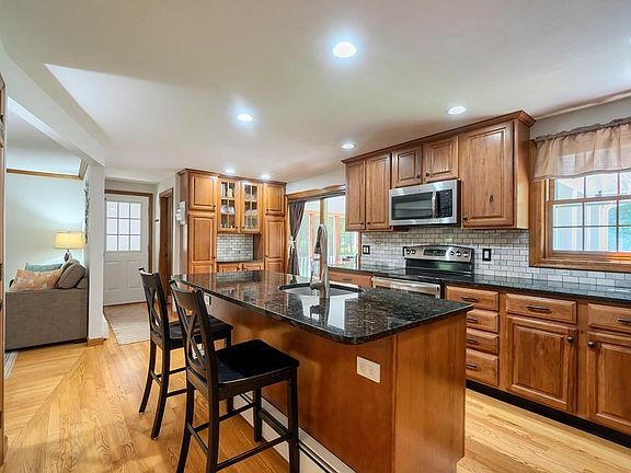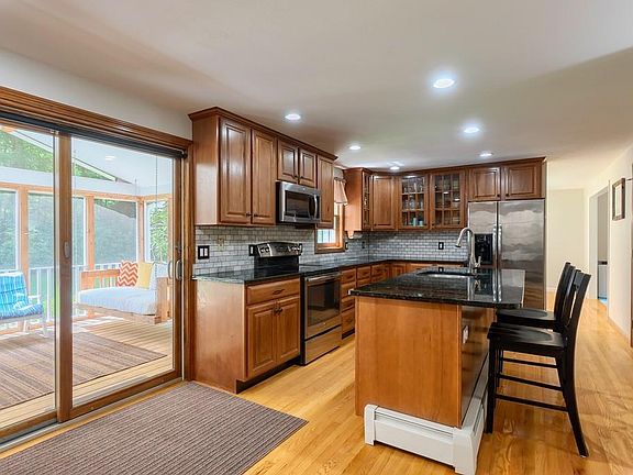 - Kit Dscrp: Dining Area, Flooring - Hardwood, Countertops - Stone/Granite/Solid, Deck - Exterior, Kitchen Island, Stainless Steel Appliances