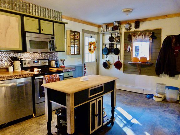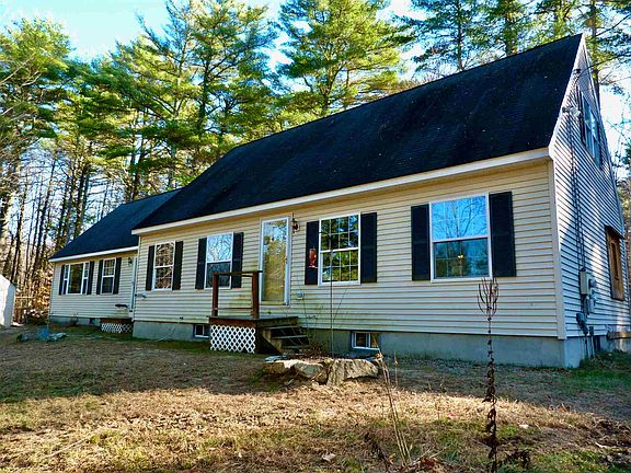 Expanded 3 bedroom, 2 bath cape on a quiet cul-de-sac with 1.32 acres. Great neighborhood conveniently located close to the town beach and boat launch on Lake Winnipesaukee, town library, school and just 6+ miles to downtown Wolfeboro. Nicely updated kitchen with stainless steel appliances, dining room, living room and den, each with a pellet stove, guest bedroom and a first floor master bedroom. The second level could be used as a bedroom and bonus/recreation room. There is also a walk-in attic that offers additional expansion opportunities. Got chickens? The huge outbuilding is currently being used as a chicken coup and horse barn. Lots of potential to make this property your own! Showings will begin on April 17th.