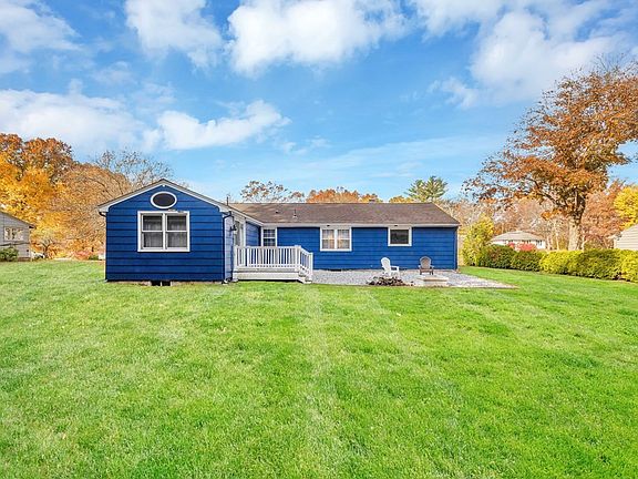 UPDATED RANCH ALERT!!!!!! Ready for a new owner to unpack and enjoy easy living one floor living! You will be greeted by the spacious living rm w/ gleaming hdwd flrs highlighting a brick hearth frplc & great picture window adding nice natural sunlight! Open concept to rustic dining room with storage and access to kitchen area! Updated kitchen w loads of cabinets, peninsula and pantry! Main level has highly sought after primary bedrm and two additional bedrms all with gleaming hrdwd flrs! Primary bedrm will DELIGHT with walk-in closet, en-suite bath, cathedral ceiling AND sliders to a private trex deck! WOW! Main level is complete with full hall bath! Let's head down to the finished space in the lower level that can be used as a bonus room and already comes set up w/ bar area! YES! Lower level under primary room is perfect for gym area! Outdoor entertaining is a breeze on almost a half acre! Private, flat yard with large patio area are just perfect for entertaining in any season!