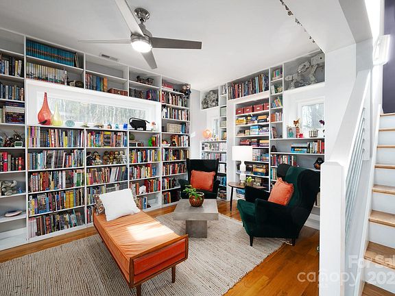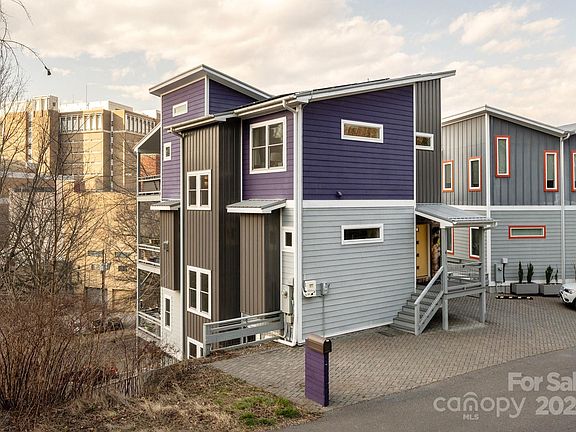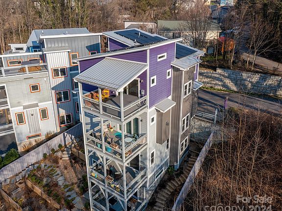 Unique contemporary 5 bed 3.5 bath Net Zero home with four levels of low maintenance living right in the heart of downtown Asheville. Enjoy views of the iconic Asheville City Hall while relaxing on one of the many covered decks or stroll into town in minutes for a night out. Enter the main level through a fantastic library leading to an eat-in kitchen and main living area warmed by an in-wall gas fireplace (don’t miss the hidden half bath on your way!). Upstairs you’ll find a spacious primary suite with a huge walk-in shower…or take time to relax in the hot tub on the upper deck. There’s another bedroom too for a perfect kid room or office. Down one level you’ll find bedrooms and flex space for a den, playroom or office. Basement level suite with kitchenette could be an AirBnB, guest suite or a rec room. The possibilities with this home are numerous! Finish it off with a fenced in low-maintenance backyard and you have downtown living at its finest. Come take a look for yourself today!