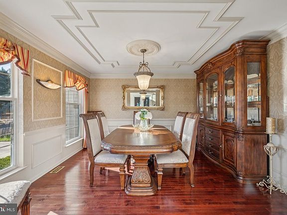 Spectacular home with gorgeous finished basement, resort style backyard and included value packed amenities throughout! You will imediatley realize this house is well cared for and meticulous once you enter the Foyer as the custom shadow boxes, crown molding, updated stair railings, ceramic tile floor and chandelier inspire your expectation. The Formal Living Room, currently used as a home office, features rich crown molding, French doors with decorative glass and lovely hardwood flooring which continues in the Formal Dining Room, also showcasing custom woodwork - shadow boxes and crown molding along with a chandelier and wall sconces. The kitchen offers white cabinetry and a center island with granite counter top and tiled backsplash as well as stainless steel appliances. A breakfast area with sliding glass doors offer a tranquil view of the private rear yard and inground pool. Just off the kitchen is the family room with a cozy, brick lined, gas fireplace and recessed lighting. A huge laundry room, powder room and 2 car garage with newer garage doors and opener complete the 1st level. The 2nd floor offers 4 bedrooms and 2 full baths - all freshly painted in a soothing neutral color! When your ready to relax, the primary bedroom has been recently updated with custom woodwork and crown molding. The walk in closet was installed with "Closet Factory" cabinets and fixtures. For your added pleasure, the luxurious ensuite bathroom has a large, glass, walk in tiled shower with multiple shower heads, double sink granite topped vanity plus a 32 inch flat screen TV. There are 3 additional nicely sized bedrooms serviced by a full, updated hall bath with white tile around the shower/tub. There's also a pulldown attic for additional storage needs. Luxury Vinyl plank flooring recently installed on 2nd level! If you enjoy having friends and family over, you will love the finished basement with 8 foot ceilings and a half bathroom. Replicating a true sports pub with a full custom cherry wood bar complete with, sink, ice machine, refrigerator, 2 bin beer cooler, microwave,12 barstools, crown molding, recessed lighting, surround sound speakers, pop corn machine. 40" and 24" TV's included. The back yard is an oasis in itself with a 40 X 16 fiberglass inground pool and diving board (3'-8' depth). Featuring a large, two tiered stamped concrete patio and walkways, custom landscaping and lighting, aluminum fence enclosed yard, 16' x10' shed with refrigerator and stand-alone freezer, brand new Grill Island/ Outdoor Kitchen 10'x9' L-shaped with bar stools (grill, refrigerator, ice chest, side burners and storage with custom fit cover). Also included: TV hook up, gas fire pit with 4 chairs, large canopy umbrella, lantern lights. Pool has a newer filter and all pool equipment, robot vacuum, deck box and full mesh cover is included. 10 zone sprinkler system. Roof and HVAC approximately 10 years old. Seller to purchase a Weichert Home Warranty for Buyer at closing.