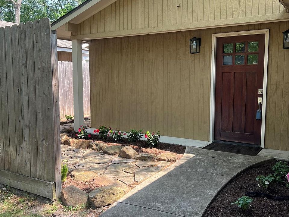 This beautifully Updated 3 bedroom 2 bathroom home in The Woodlands can be yours. Recessed Lighting, pocket doors, ceiling fans, low E Windows, and updated fixtures throughout. Kitchen has neutral soft close custom cabinets and drawers, Stainless Steel appliances, Updated backsplash, large island with quartz counters open to the living room. Both bathrooms have large walk in showers and custom tile. The backyard oasis is surrounded by mature trees and is the perfect area to entertain or just relax with a cool beverage. Zoned to highly rated schools and minutes to I-45, top hospitals, and shopping.