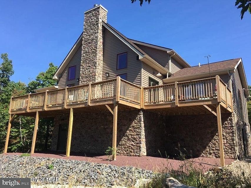 RUSTIC,A-FRAME HOME WITH LOG INTERIOR WALLS AND BEAMS. THIS SPACIOUS, 4 BEDROOM TURN KEY HOME INCLUDES HIGH END RUSTIC MOTIF FURNITURE AND OTHER RUSTIC ITEMS. ENJOY THE SEASONAL MOUNTAIN VIEW FROM YOUR SCREENED IN PORCH OR LARGE DECK! LOCATED IN THE 4 SEASON, PRIVATE , GATED COMMUNITY OF EAGLE ROCK RESORT , NESTLED IN THE BLUE MOUNTAINS OF PA , THIS MOUNTAIN HOME AND RESORT OFFERS MANY 4 SEASON AMENITIES TO ENJOY! Amenities include; golf courses, indoor/pools ,lake, beach, ski, snow tubing, gym, tennis,basketball,and pickle ball courts, Bocce Ball pavilion, spa, equestrian center and so much more ! This is the only home that sits on this private cul-de-sac, in the peaceful mountain view section of Eagle Rock. If your looking for a place to retreat to get away from all of the hustle and bustle, or your forever home , this is the home for you!!
