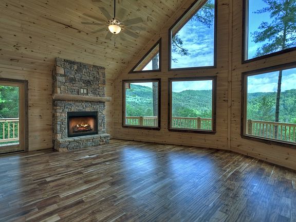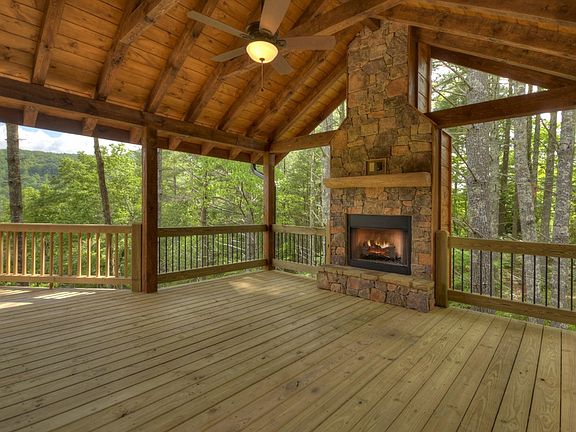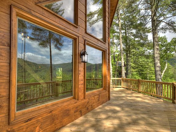 VIEW OF THE NATIONAL FOREST in the HEART OF THE ASKA ADVENTURE AREA!! This 4 bedroom, 3.5 bath FLAT front cabin sits on 1.77 acres with year-round mountain view and offers many upgrades including open kitchen w/custom tiled flooring, granite countertops, large farm sink, tiled backsplash, open to greatroom w/stacked stone fireplace and wall of windows showcasing your view, custom tiled showers and bathrooms, hardwood flooring on main and upper levels, terrace level includes wet bar and stacked stone fireplace, large party deck w/outdoor woodburning fireplace, expansive decking and just minutes to Blue Ridge for dining & shopping, the Toccoa River for tubing & kayaking and the USFS for hiking and mountain biking!