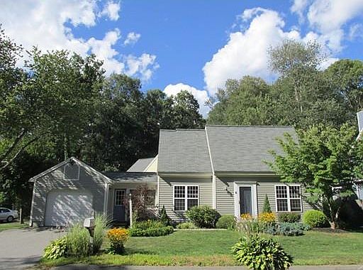 Lovely cape style home with wonderful curb appeal located on quiet cul-de-sac in great area of town. Breezeway family room has cathedral wood ceiling with access to back deck and easily maintained yard. Ceramic tiled kitchen fully applianced, bright sunny dining room with hardwoods and chair-rail, front entryway with coat closet and hardwoods, spacious living room with wall to wall carpet, first floor bedroom currently being used as an office,full bath first floor, second floor spacious master with wall to wall and double closets, full bath, large linen closet, second bedroom wall to wall, pull down attic, central air, fully finished basement,newly carpeted, laundry and great storage closets. One car garage with plenty of storage space, nice floor plan and space for a family, condo alternative or for someone looking to downsize, this lovely home fits the bill for all! Wonderful town with great access to schools, stores,highways,rivers and lakes.