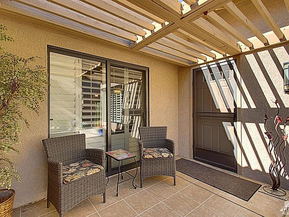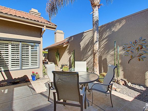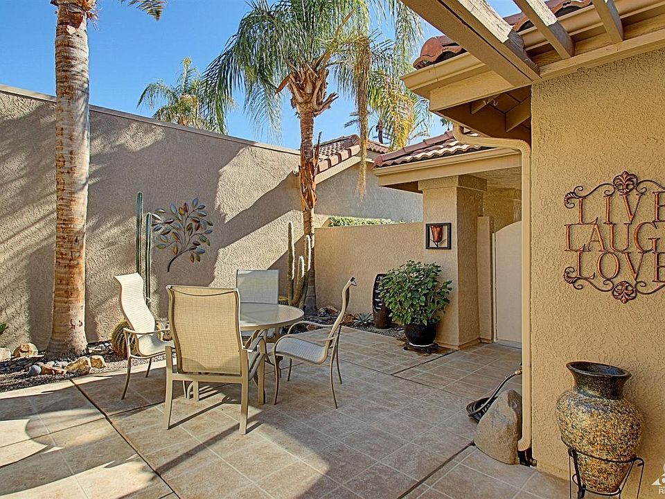 PRICE reduced...you NEED to see this home.Not only is it located on one of the MOST desirable streets in the complex but it is also a FREESTANDING end unit. This POPULAR G Plan features 2 MASTER SUITES on opposite ends of the building. Absolutely ADORABLE and ready for IMMEDIATE occupancy. Remodeled kitchen and bathrooms. Shutters throughout. The photos tell it all. Cute, CUTE, cute. Located on a large greenbelt with the pool very close by. Views of the West mountains from the back patio. 2 car attached garage. AND...it is FURNISHED (per inventory). Silver Sands Racquet Club is located adjacent to the J.W. Marriott Desert Springs Resort and across the street from Desert Willow Golf Resort where Palm Desert residents can play for $48/round. SSRC amenities include 15 pools/spas, 8 lighted tennis courts with a pro on staff during the season, and state of the art fitness facility. SSRC is definitely Palm Desert's BEST kept SECRET. Don't miss this one!