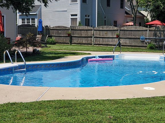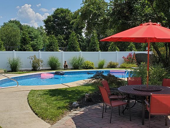 This lovely center hall colonial features 4 bedrooms and 2 + 1/2 baths and is situated on a quiet cul-de-sac in an upscale neighborhood. It has a nice sized private and fenced rear yard with a gorgeous 18 x 32 kidney shaped in ground swimming pool with a brand new liner. There is a nice shed for storage of all your water toys and pool equipment . The interior has been tastefully updated and renovated as follows: kitchen with quartz counters and bathrooms (2012), carpets and hot water heater (2016), new windows (2018), entire massive finished basement carpet and pool liner (2019). The kitchen boasts a stainless steel appliance package with quartz counters and a center island with very nice engineered wood flooring . -con't-