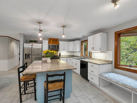 This fabulous 4+ bedroom, 4 bath home shines on multiple levels. Located on a quiet cul-de-sac in the premier neighborhood of Evergreen Estates. Showing great pride of ownership with 3600sq.ft,a desirable floor plan and impressive updates throughout. Offering the classic front entrance, wainscoting, crown molding, custom wood trim, hardwood & tile floors. First floor features a spacious living room that leads into a study/den which can be easily converted into a first floor bedroom with an adjoining full bath. Embrace a spacious formal dining room that leads to an open concept, updated kitchen, boasting custom finishes, a grand center island, quaint butler pantry and a sun filled window seat. Lots of room for cooking and entertaining in addition to the cozy family room with fireplace, and adjoining sun room with cathedral ceilings. Second floor includes a primary bedroom, walk in closet, gorgeous bath with a tiled walk in shower, separate soaking tub & double sinks. In addition, 3 generously sized bedrooms, plenty of closets and laundry. Basement has a finished room that is perfect as a playroom/ rec room along with a great workshop and lots of storage. A sweet bonus room with built ins above the 2 car garage offers additional flex space. This inviting abode sits on a private 1.5 acre level lot, complimented with a fire pit & dual-level decks with southern exposure. Perfect for relaxing, entertaining or outdoor play. The best of both ~ tranquility & great commuter location!