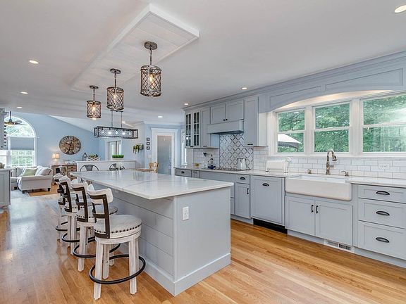 Does your dream home include an updated kitchen with quartz counters, a generous 9' island, two pantries, shiplap plus a farmer's sink? Presenting 6 Bradford Street in desirable Windham, NH! The kitchen is the jewel of the home, but other highlights include a cul-de-sac address, a large family room with vaulted ceilings, a large heated porch with sliding windows and vaulted ceilings, manufactured decking overlooking an above ground pool and huge yard plus finished space in the attic and the walk-out basement. Don't forget to check out the playhouse...perfect for young children, storage or a she shed...it's powered! Also worth a look, there is back lighting in the TV built-in the family room, a fun feature for holidays or parties AND, an up-lit shoe grate at the front door for muddy boots. Looking for an updated home on a quiet street with access to Windham's great schools and designed for entertaining? Look no further! Showings begin Saturday, June 26th at 1:30 at the PUBLIC open house. Welcome home!