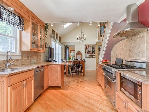 BEAUTIFUL TWO FAMILY NEAR THE CENTER OF TOWN WITH AN INCREDIBLE TOWNHOUSE STYLE OWNERS UNIT THAT'S LIKE ITS OWN HOUSE. THREE BEDROOMS AND ONE AND HALF BATHS. OPEN CONCEPT. THE DREAM KITCHEN FOR ANY COOK INCLUDES STAINLESS APPLIANCES WITH VIKING STOVE, VENT HOOD, GRANITE COUNTERTOPS, AND TILE BACKSPLASH. TONS OF WORKSPACE. HARDWOOD FLOORS EXTEND ACROSS THE FIRST FLOOR. THE OPEN DINING ROOM ALSO HAS VAULTED CEILINGS WITH A SKYLIGHT AND AN OPEN STAIRCASE TO THE SECOND FLOOR. FORMAL LIVING ROOM INCLUDES A FIREPLACE WITH A MUD ROOM LEADING TO THE PRIVATE FRONT ENTRANCE. A RENOVATED HALF BATH COMPLETES THE MAIN LEVEL. UPSTAIRS ARE 2 SPACIOUS BEDROOMS AND A THIRD MASTER WITH VAULTED CEILINGS. IT'S WALK-IN CLOSET IS ALREADY PLUMBEED SHOULD SOMEONE WANT TO ADD A 1/2 BATH. THE RENOVATED FULL BATHROOM INCLUDES A JETTED TUB AND SKYLIGHT. AN ADDITIONAL WALK-IN CLOSET COMPLETES THINGS. ON THE MAIN LEVEL ACROSS THE HALL LIES THE LARGE 1 BEDROOM APARTMENT. OPEN KITCHEN WITH PENINSULA, DINING ROOM, LIVING ROOM, BEDROOM, AND BATH. CURRENTLY LEASED. IN THE SHARED HALLWAY TO THE BACK ENTRANCE AND BASEMENT IS THE LAUNDRY. OFF THE BACK ALSO LIES A WONDERFUL DECK. PERFECT FOR RELAXING AND ENTERTAINING. BOTH APARTMENTS ARE GAS BASEBOARD HEAT. THE TOWNHOUSE HAS A NEW TANKLESS ON DEMAND SYSTEM AND ALSO HAS CENTRAL AIR. TONS OF STORAGE IN THE BASEMENT. NEWER ROOF AND EXTERIOR PAINT JOB. LARGE DETACHED 2 CAR GARAGE AND A GREAT YARD.