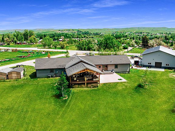 Welcome to the perfect country retreat nestled within the coveted Big Horn School District. Discover the epitome of country living at 6 Bridger Point, a stunning ranch-style home situated on a sprawling 2-acre lot. Meticulously upgraded in all the right ways, this property boasts 5 bedrooms and 3 baths, offering ample space for your family's comfort and convenience. Enjoy panoramic Bighorn Mountain views from the newly built spacious covered deck, brand new lower-level bar adjacent to the theatre room, and numerous other upgrades. But wait, there's more! The owners of this exceptional property recently spared no expense in constructing a magnificent 42'x75' insulated shop boasting an array of premium features. Experience the utmost comfort with in-floor heating, (click more) providing warmth and coziness even during the coldest winter days. The commercial-grade loft/office provides a versatile space for work or creative pursuits. With a robust 220 amp service, floor drains for easy cleanup, a separate electric meter, and a comprehensive video monitoring system, this shop is equipped to meet all your needs and exceed your expectations. See documents for additional property inspection.