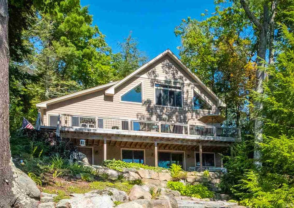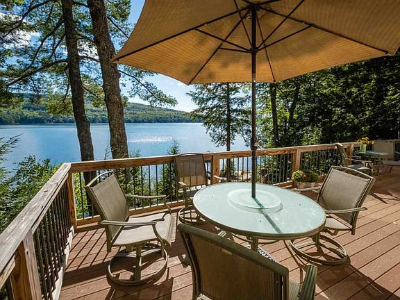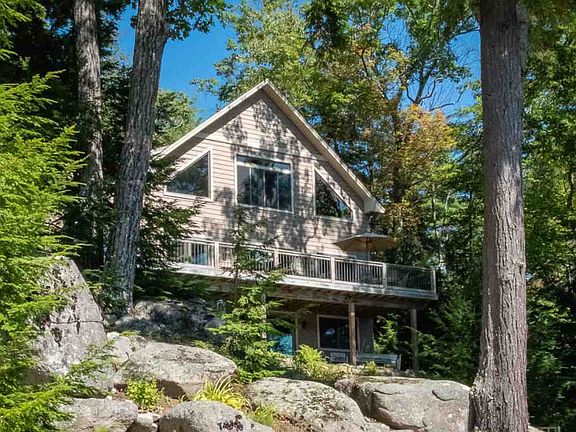 Picture yourself daydreaming on the deck, basking in the sun along the shore and docks of this idyllic Merrymeeting Lake retreat located in New Durham, NH. Discover the tranquility lakeside living has to offer as you soak in the natural beauty indoors and out. Every detail has been attended to in this lovely 2+bedroom, 2 bathroom modern contemporary style home built in 2011 from the gorgeous southern yellow pine wood floors, to the vaulted ceiling/loft above, the light pine walls and ceilings, to the ceramic tile floors and the wall of glass overlooking the large deck, patio and lake below. As the soaring stone gas fireplace keeps you warm and cozy on cool evenings, you will be delighted to entertain family and friends in the open concept kitchen/great room which boasts stainless steel appliances, side-by-side refrigerator, granite counters and a large kitchen island to enjoy. When you are ready to wind down and call it a night there is a guest room on the main level along with the loft sitting area on the 2nd level and Master Bedroom Suite ready to greet you with stunning views of the lake from above. The owners of this Lakeside retreat have spared no expense providing partitioned living and storage spaces on the lower level to keep everything tidy; waiting for your finishing touches. Looking to enjoy the Lakes and Mountains of New Hampshire look no further from skiing to fishing, from hiking to swimming, from boating to a lazy day at the beach it is all within reach.