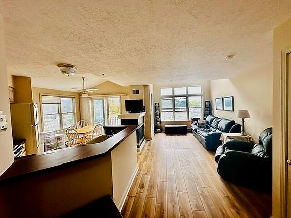 As you enter the condo, you are greeted by an open concept living space that seamlessly combines modern design with the warmth of home. The high ceilings and expansive windows flood the room with natural light, creating an airy and inviting atmosphere. The living area is spacious and comfortable. Loft bedroom has great natural light and space for a washer/dryer. Home is basically a blank slate to do add your own personality. The true allure of this loft condo lies in its proximity to Lake Michigan and the views overlooking the marina.
