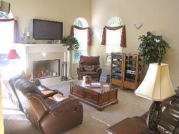 DRAMATIC 2 STORY ENTRY, PALLADIAN WINDOWS, LIVING ROOM W/ STONE FIREPLACE, BOW WINDOWS, BUILT-INS, SURROUND SOUND. DINING ROOM W/ BUILIT-IN GRANITE-TOPPED BAR AND WINE FRIDGE, CHAIR RAIL. cHEF'S DELIGHT KITCHEN W/ CENTER ISLAND, GRANITE COUNTERS, BUILT-IN WINE RACK AND SLIDERS TO DECK AND PATIO. sUNKEN FAMILY ROOM ADJOINS KITCHEN AND FEATURES VAULTED CEILING W/ SKYLIGHTS, FIREPLACE W/ MARBLE SURROUND AND CEILING FANS. ROMANTIC AND LUXUROUS MASTER SUITE W/ DRAMATIC TRAY CEILING, WALL TO WALL CARPETING, 2 WALK-IN CLOSETS AND MASTER BATH WHICH FEATURES GRANITE TOPPED DOUBLE VANITY AND JACUZZI BATH. ADDTIONAL BEDROOMS W/ WALL TO WALL AND DOUBLE CLOSETS. LARGE 2ND FLOOR BONUS ROOM. ALARM SYSTEM, UNDERGROUND SPRINKLERS. HOT TUB AND AND SWING SET.