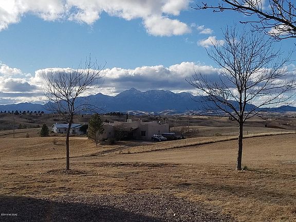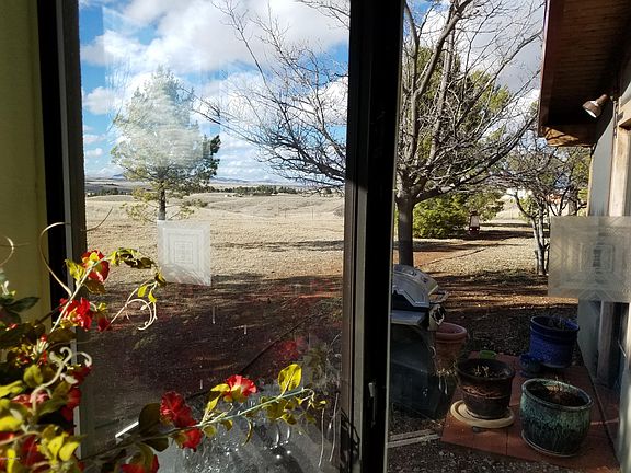 Wonderful Santa Fe style Home, sits atop high ground for views in all directions. Trees have been planted around the house which gives it a cozy feel and reduces wind effects. Fantastic Arizona room / porch off the back side was added about 6 years ago, allows for outside living. Nicely appointed kitchen was redone about 5 years ago, slow close cabinet doors and pull out shelves provide lots of storage. Exposed beams in living room add to the comfortable feeling inside this 3 bed room, well maintained residence. Two lots sold in this listing both fenced for dogs to run, electric gate entry to the property. Stained glass lamp in nook Does Not convey