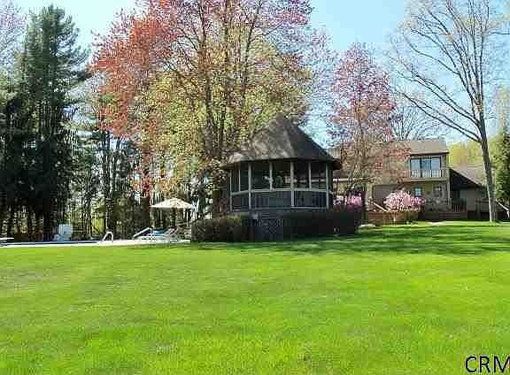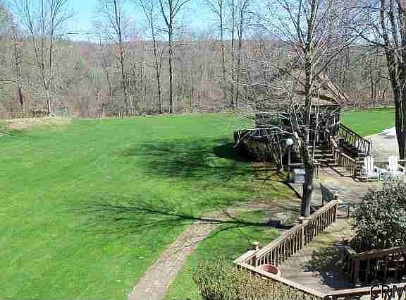 Bright open floor plan, formal dining rm, sunroom w/breakfast & sitting areas. Oak hardwood floors, see thru fireplace, marble on living rm side/stone on family rm side. Master bedroom with sliding doors to private balcony & wonderful sunrise views. Basement family rm includes bar area & hearth for woodstove. Fenced private back yard includes two deck areas, screened gazebo, kidney shaped inground pool, & lighted half court basketball area. Has 2nd well to service pool & sprinkler system.