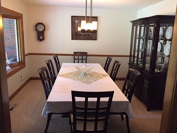 In City Limits w/city water and sewer! 230' frontage on Lake Bertinetti. Cul-de-sac location for this 3-5 bedroom, 3 1/2 bath home. Hardwood floors & fireplace on main floor living room, formal dining, updated kitchen w/hardwood flooring, sunroom and partially finished lower level walk-out to take advantage of the terraced back yard. New steel sea wall, boat dock, beautiful landscaped yard and gorgeous waterfall. Concrete drive. Almost 1 acre. Invisible fence stays.