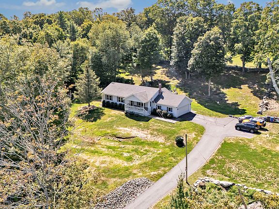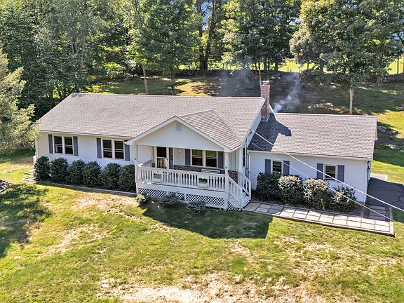 Charming ranch on a picturesque 1.58-acre lot in Colchester, framed by stone walls and featuring your own private pond. This one-of-a-kind property offers one-level living with 2 bedrooms, 2 full bathrooms, and 1,020 sq ft of living space. The open floor plan includes a spacious living room with vaulted ceilings that flows into the dining area and kitchen, which features a walk-in pantry. A door from the dining room leads to the rear deck, perfect for enjoying the peaceful surroundings. The primary bedroom impresses with vaulted ceilings, a walk-in closet, tons of space, and a fully remodeled en-suite bathroom. Hardwood floors extend through much of the main level, with laundry conveniently located on the first floor. The full basement provides plenty of storage along with a finished bonus room/office and a cedar closet. Relax on the welcoming front porch and take in the natural beauty of this serene property. This property also features a whole house Generac generator along with a central vacuum system. Nothing to do but move in! Schedule your showing today! Water treatment system (2021). All windows replaced (2022). Hot Water Heater (2023). Main line from house to septic, new baffle and D Box (2023).
