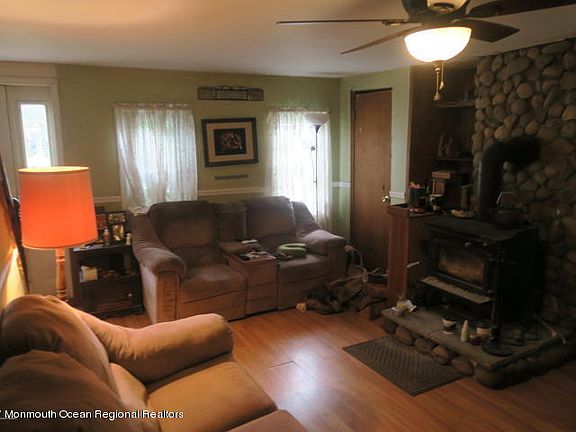 Enjoy Your Charming Saltbox Colonial 3/4 bedrooms, 2.5 baths with Large Detached Garage w/ Electric on almost 1 Acre in Desirable Cookstown. Galley Style Kitchen w/real stone brick accent. Cozy living room w/Wood Stove and Stone Surround. Upstairs Master bedroom with private full bath along with 2 additional bedrooms and an updated full bath. Natural Gas Heat and Central Air. Sit and Relax on the large 25 x 15 Deck with Sunken Hot Tub w/new pump overlooking spacious fully fenced rear yard. Low Taxes! Conveniently located near McGuire, Dix, Lakehurst base