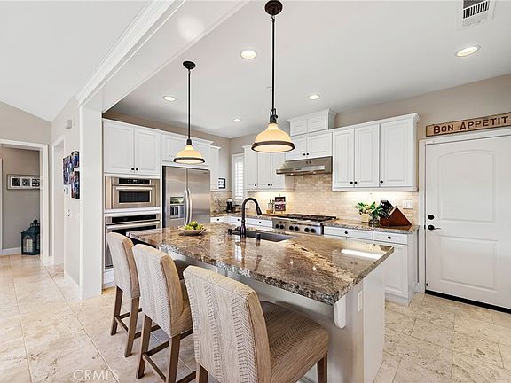 Additional amenities include central vacuum, surround sound speakers in 3 rooms, recessed dimmable lights throughout and a dedicated laundry room with upper cabinetry and a soaking sink. Attached 2 car garage with epoxy flooring, tankless water heater, and ample built-in cabinetry compete this home. This residence offers a lifestyle of elegance and comfort, complemented by elevated community amenities such as a security patrol, resort style pool, workout gym, bocce ball courts, putting green, and beautiful clubhouse with numerous clubs and entertainment. Welcome Home!