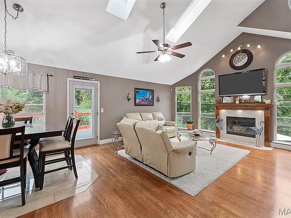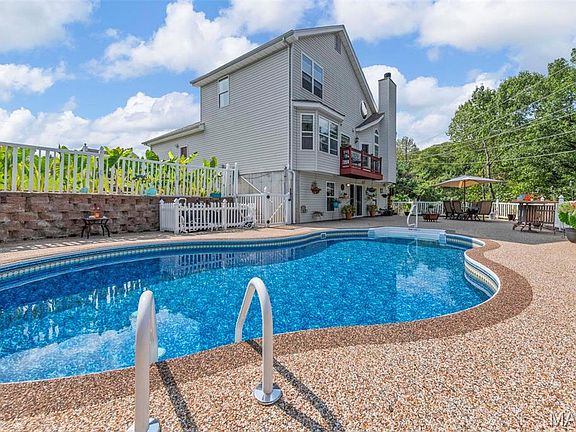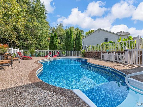 Looking for a stunning private inground pool? Find your oasis in this private wooded setting joined with expansive patio & inground pool! Pool features: 3ft-6ft in depth, newer liner, ladder, stairs, auto pool cleaner &cover. This 1.5 story features four bdrms with primary bedrm on main level w/walkin closet, bay window & luxury bath-makeup vanity, soaking tub & separate shower! Special amenities include vaulted great rm, skylights, woodburning fireplace w/gas logs & wood mantel &tv! Wood floors thruout most of main level with tiled insets in dining rm & hallway. Kitchen has upgraded gas range, silestone counters, brkfast bar, cathedral ceiling, palladium wndw, 42 inch cabinetry w/crown molding & frig stays! Second flr hosts two bdrms (one w/luxury vinyl plank flooring) both w/walk-in closets + full bath. Huge Finished walk-out lower level is incredibly spacious & versatile with huge family rm/rec room, large 4th bedrm, full bath! Inground sprinkler, all tvs can stay. Garage-23ft deep!