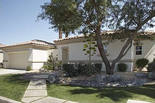 Owner Will Consider A Lease Option..... Former model home with all the extra amenities located in the private gated community of Lantana in the heart of Palm Desert . Lovely entrance with arch ways, designer tile flooring and large great room w/recessed entertainment center. Kitchen offers birds eye maple cabinetry, granite counters, 5 burner gas cooktop, double ovens, wet-bar with arch ways, plus separate breakfast bar in between kitchen morning room. Huge master with sliders opening to back patio & master bath with exquisite marble shower, huge walk-in closet and European style tub. Jack & Jill bedrooms plus office with built-in credenza & designer powder room. Lush backyard featuring pool/spa plus nice size covered patio facing east. Extra deep two car garage with epoxy flooring. Very low HOA's of only $67.00 monthly.