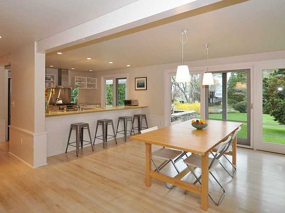 Bold, creative design in ideal location near harbor and town.Bright, open interior with spacious living areas open to stone terrace with stunning landscaping. Total of 3 bedrooms, 2.5 baths. Oversized garage, outdoor shower. Access to Bryer Beach.