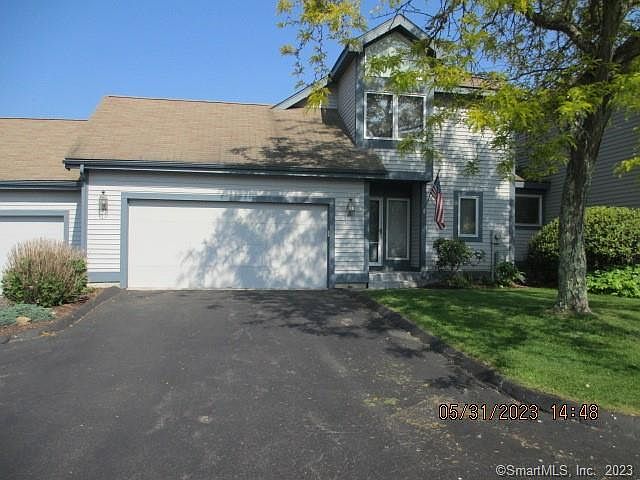 This Bishop’s Cove condominium offers 2 beds, 2.5 baths, vaulted ceilings, sunken living room with fireplace and oversize 2 car attached garage. The kitchen features granite counters, tile floor, center island and wet bar. This unit has one deck off the dining room and one off the sunroom with laundry room and half bath on the main level. The second level master bedroom features a balcony, walk in California closet, tile shower and jacuzzi. The second bedroom, also on the upper level, has California closets and full bath. This complex offers an inground pool, club house, tennis and pickle ball court with easy access to downtown Mystic, Amtrack, RI beaches and casinos.