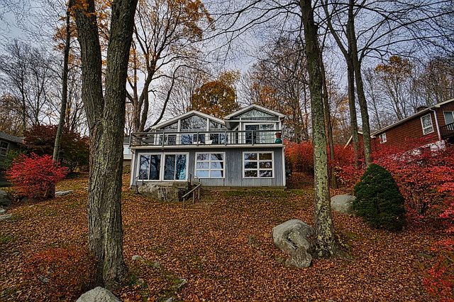 Set with the quiet lake condo community of Candlewood Landing, this detached townhouse with direct waterfront provides perfect setting for enjoying the lake with your friends & family. Walls of glass, wide planked floors, & a floor to ceiling fireplace accent the open concept main living space. The main level master suite provides far reaching southern views. The living space opens thru three entry points onto the spacious deck allowing you to easily bring entertaining outside. On the lower level you find two additional bedrooms and family room with lake access. Set on a quiet cul-de-sac, this lakeside getaway offering is a rare opportunity in this community. Make this your home away from home! Ask about the community restrictions.